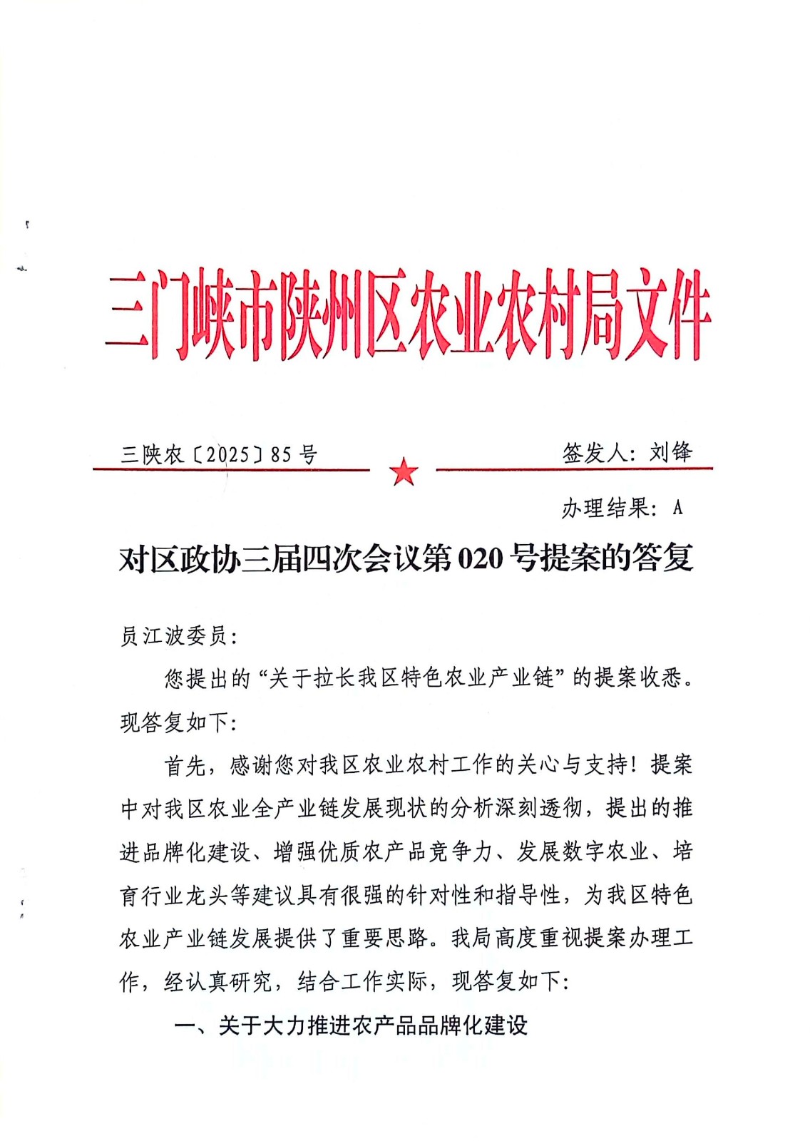 对区政协三届四次会议第020号提案的答复