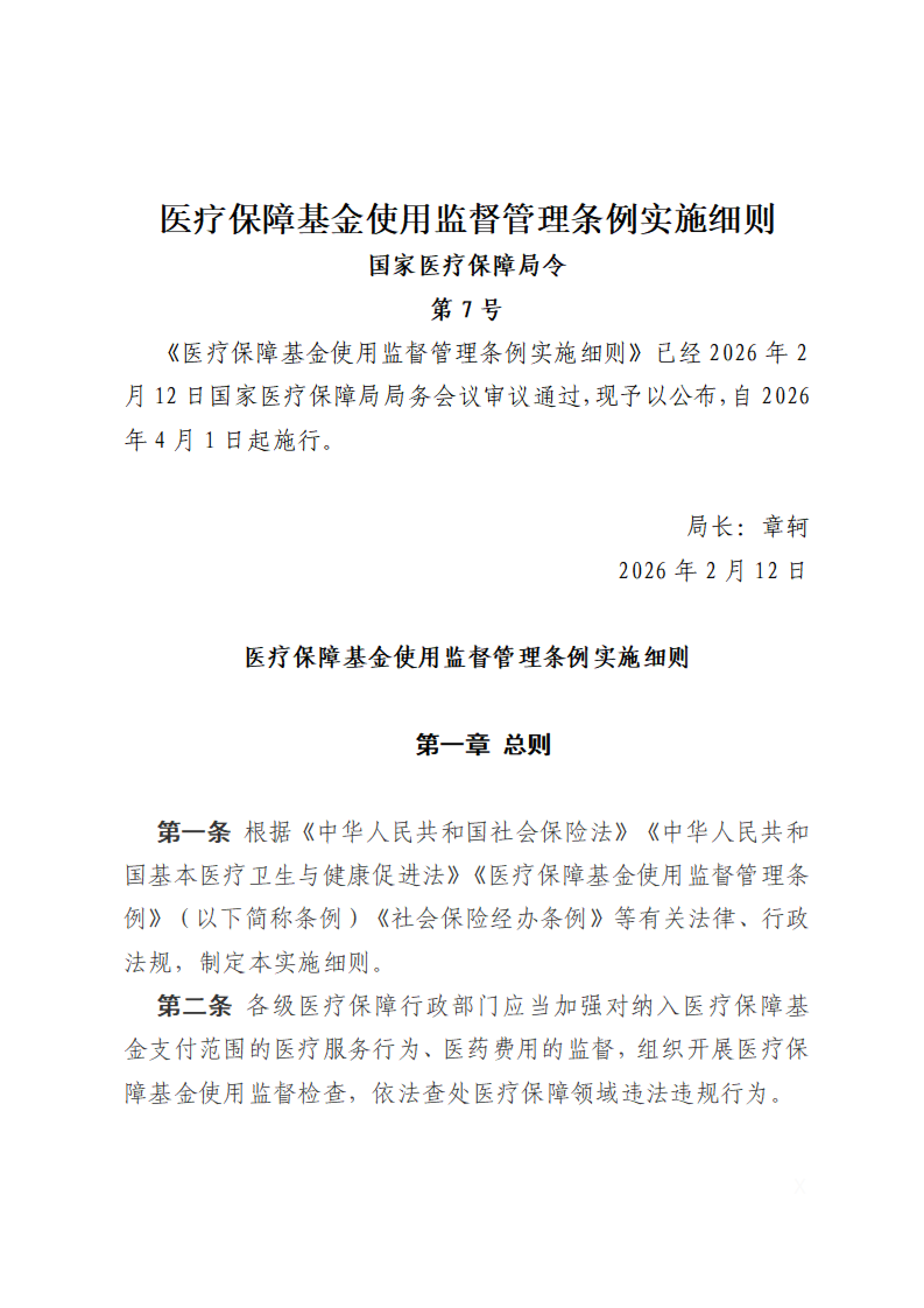 医疗保障基金使用监督管理条例实施细则 国家医疗保障局令