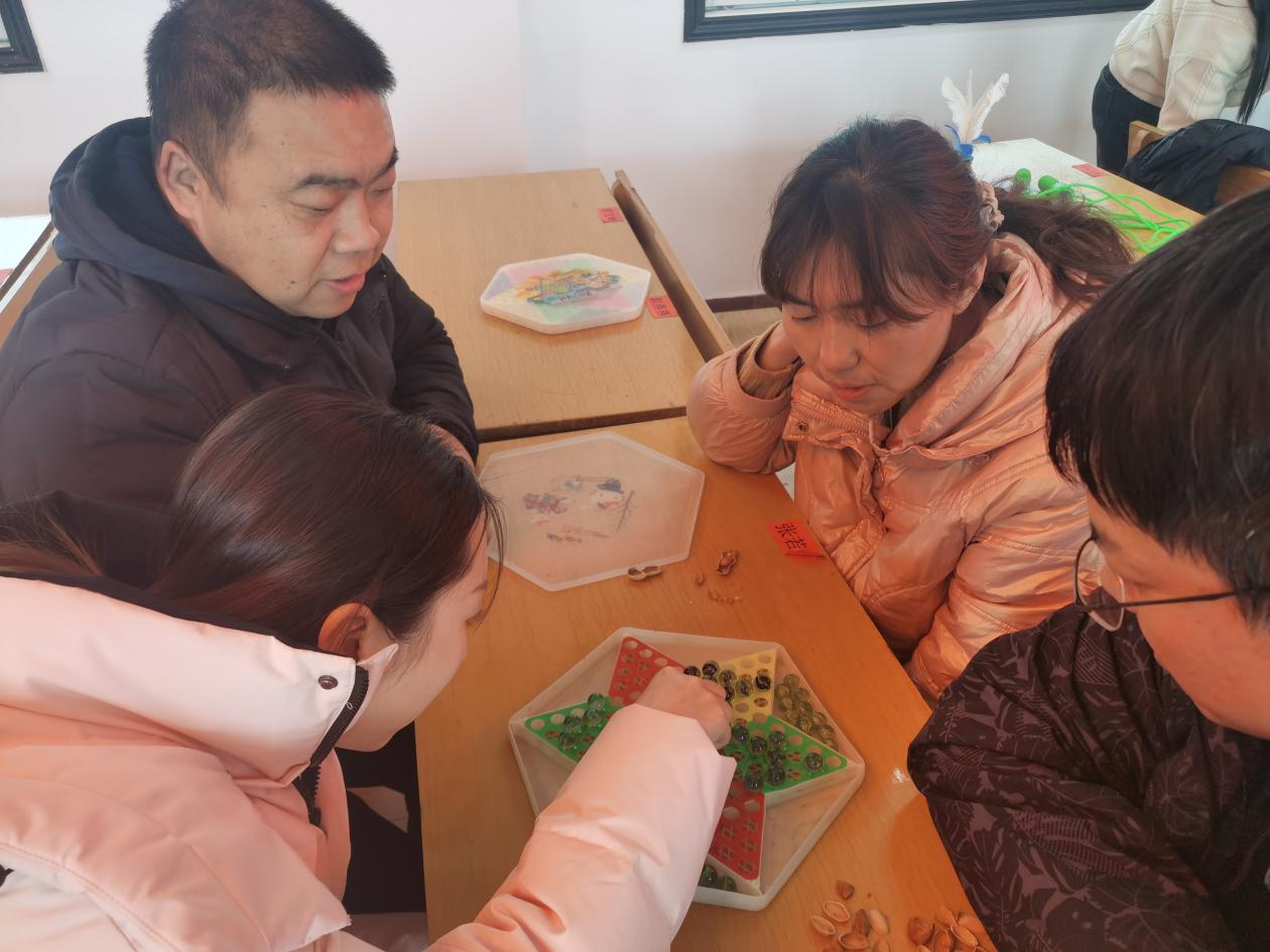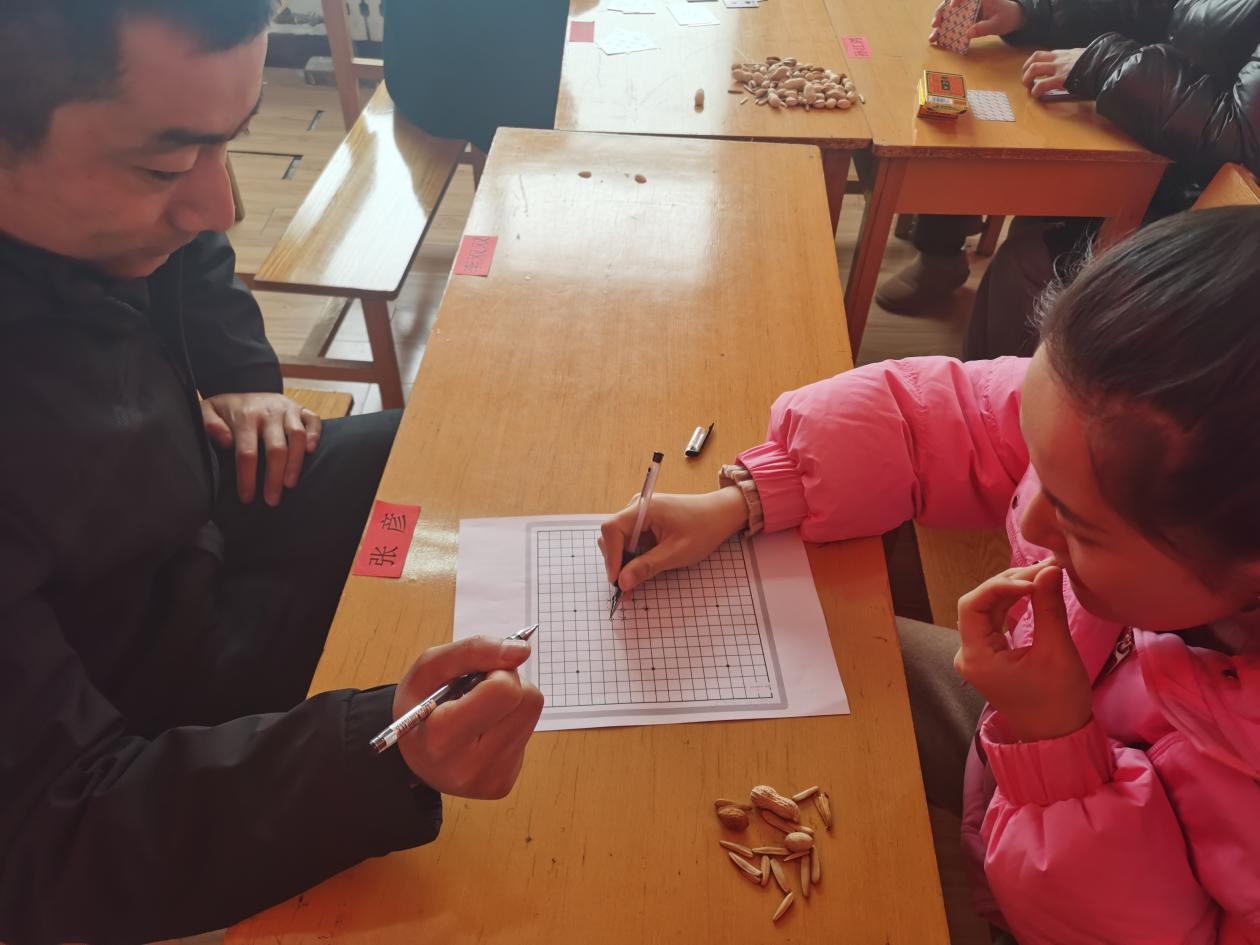 跳绳活动结束后,马上开始个人活动,有象棋、跳棋、扑克、五子棋游戏,大家配合默契,异常精彩有趣。
