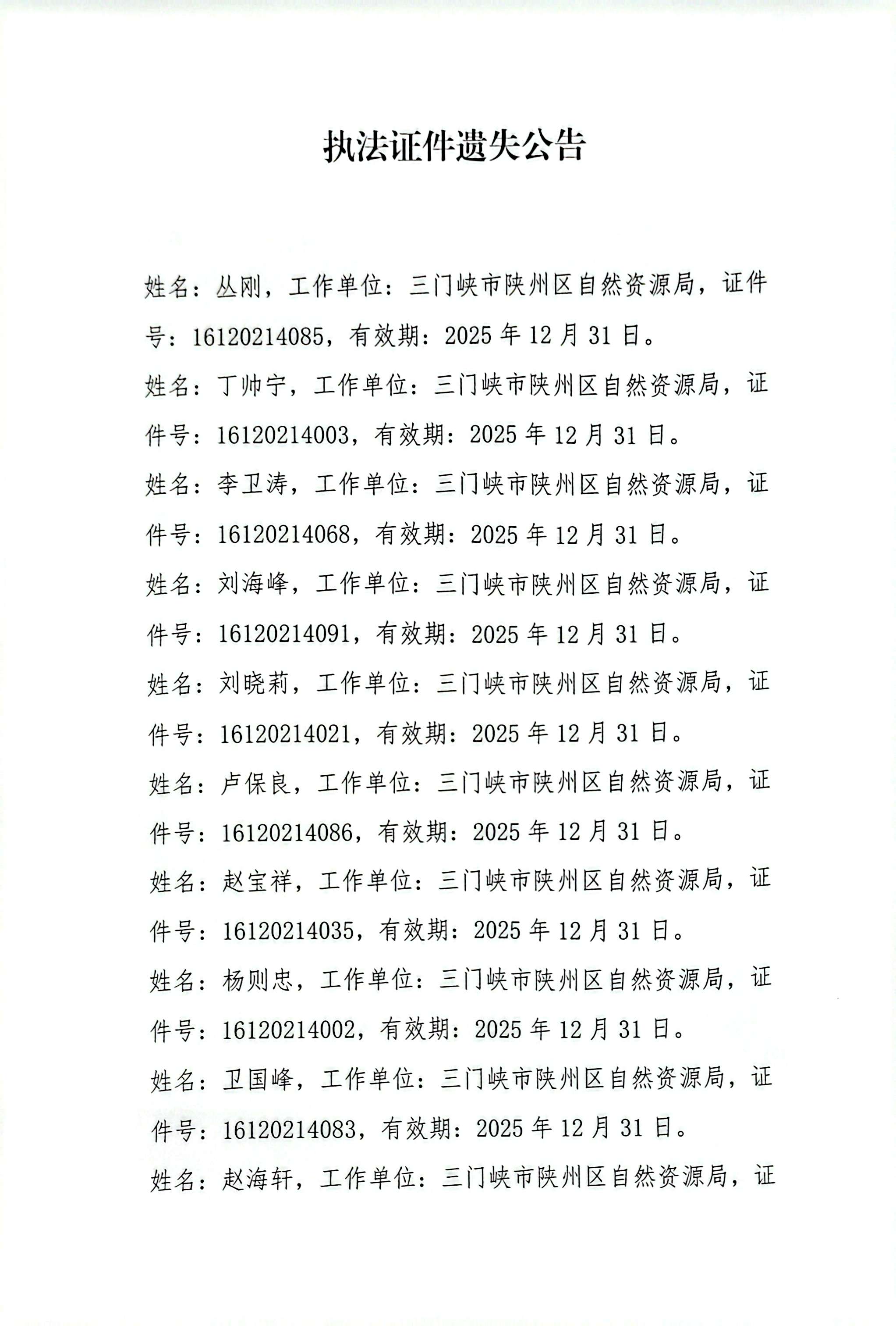 自本公告公布之日起,凡持该编号证件进行行政执法活动或其他活动的,公民、法人或其他组织可拒绝配合并举报,举报电话:0398--3833375用行改执法证件进行犯罪活动的,将由司法机关依法追究其刑事责任。